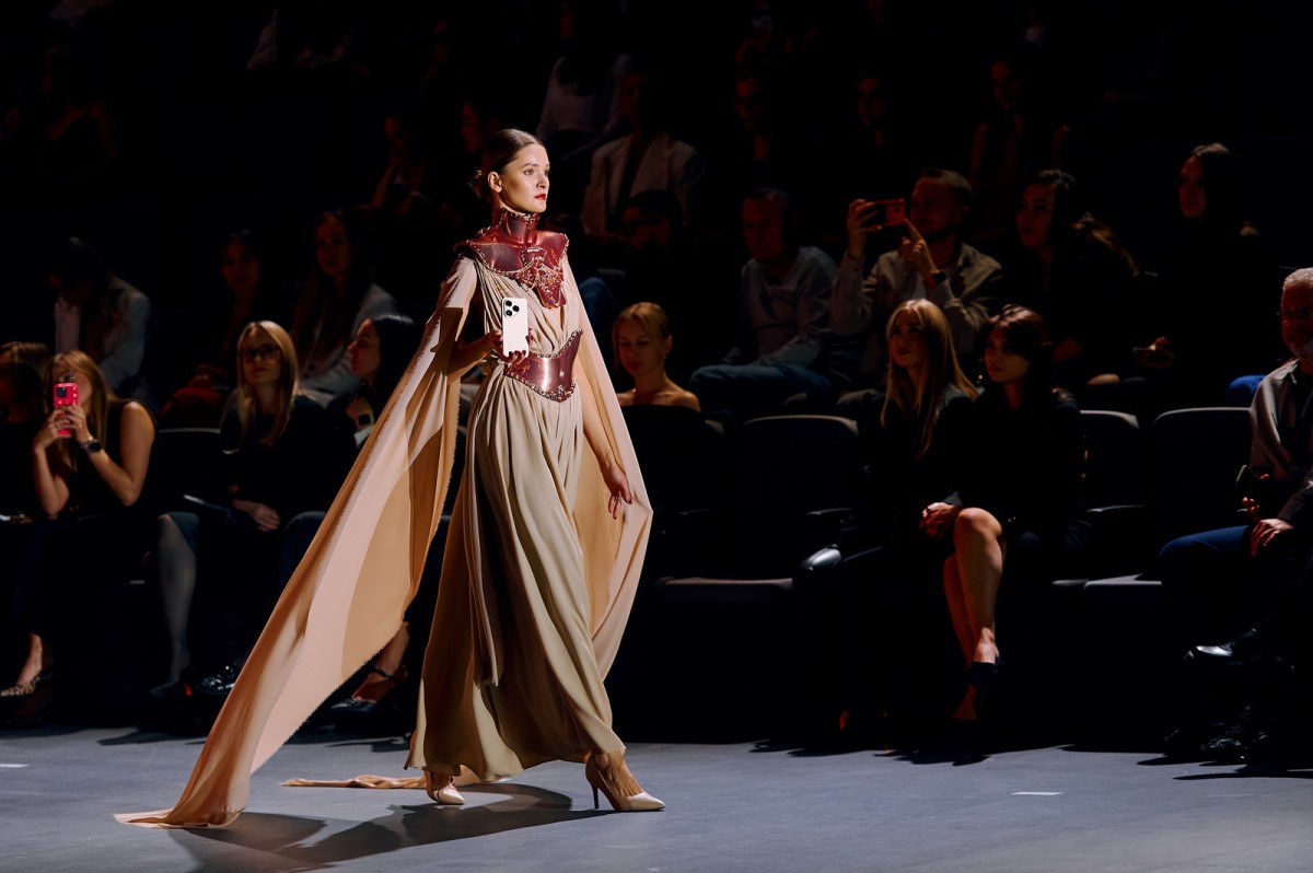 «Интересной творческой задачей для нашего тандема с Ириной Ромбальской стала возможность предложить образы, вдохновленные эстетикой флагманских смартфонов Huawei Pura 80 Ultra, – объяснила задумку Татьяна Ефремова. – Мы узнали, что в дизайне устройства используются декоративные приемы, которые пришли из высокого ювелирного искусства. Например, техника Rigato – особый метод гравировки, при котором на поверхность наносятся тонкие паралельные насечки, придавая объем и блеск – была использована в его рамке, а 3D-свечение из 200 граней украшает блок камер. Нам было интересно изучить эти детали и провести параллели с нашим творчеством, создав образы, которые отражают внутреннюю силу и характер современной женщины. Мы использовали невесомые шелковые ткани, а также скульптурные хромированные корсеты и аксессуары, которые отсылают к сияющей поверхности. Именно эту многогранность арт-объектов на стыке моды и технологий мы и попробовали воплотить».